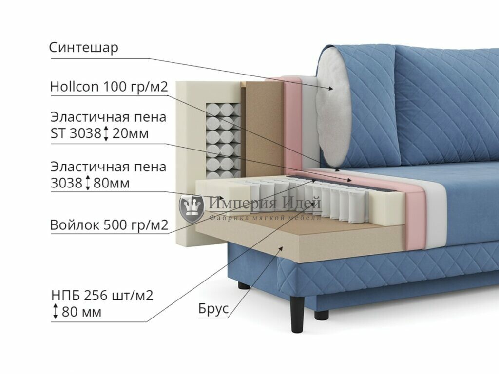 Если вы не любите стандартные решения и скучную мебель, диван «Хилтон 2» ваш выбор. Эта модель станет частью интерьера в стиле индастриал, хай-тек, модерн. Подлокотники выполнены в форм-факторе отдельных подушек, которые можно разместить в удобном для вас месте во время отдыха. Диван также подходит для ежедневного сна. Для этого установлен надежный и долговечный механизм трансформации «Еврокнига». Для хранения постельного белья и других вещей предусмотрен вместительный короб в основании каркаса.